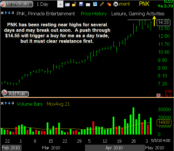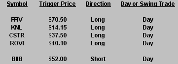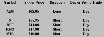 The Hit List is a look at our current swing trading positions. Stocks we are already in have “triggered”, while those we are considering for plays have not triggered. Click post title to view print-friendly link.