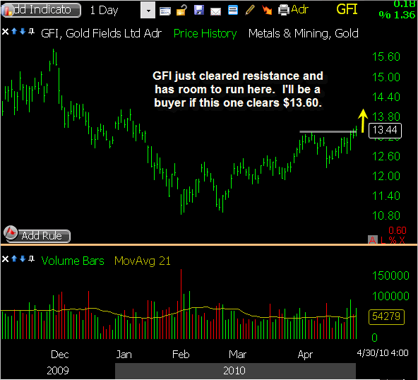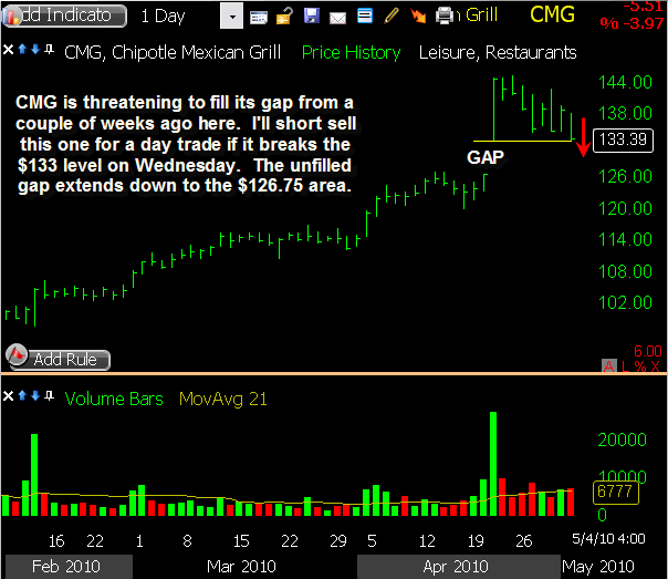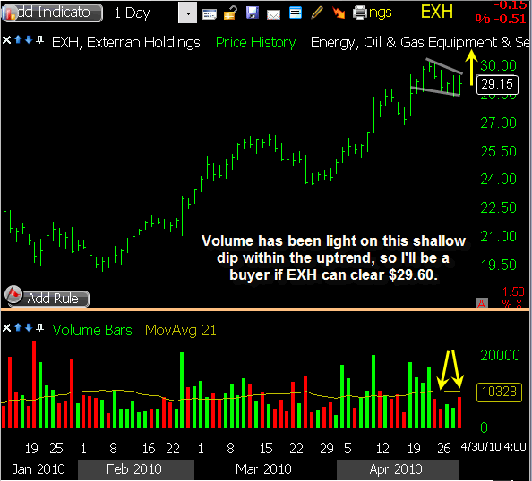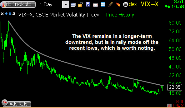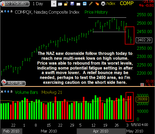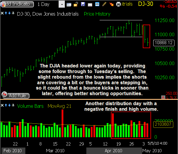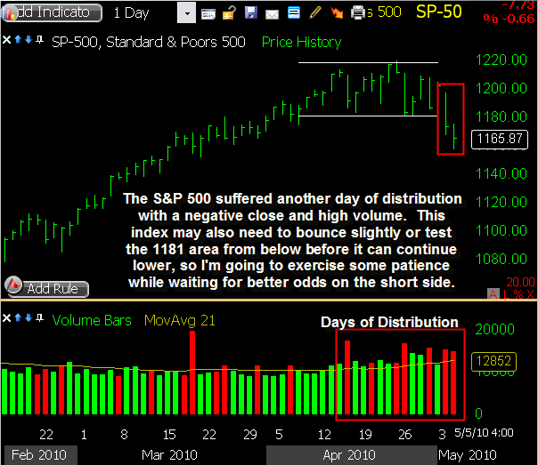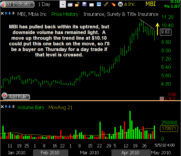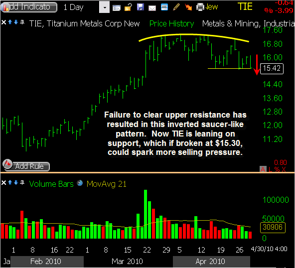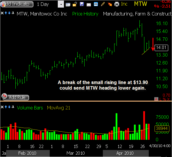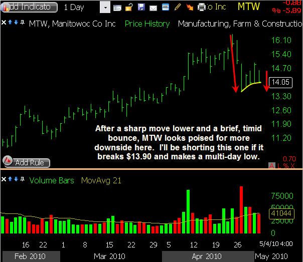 MTW triggered a short sale this morning as it gapped slightly through my intended entry price, and it showed some nice initial weakness. The downside was limited though, and a relief bounce followed into mid-day. Some selling pressure returned in the afternoon, bringing it back to within a few cents of my entry price by the closing bell. I’m sticking with my existing stop loss heading into Thursday, allowing this one some room to bounce if needed while waiting to see some downside follow through.
