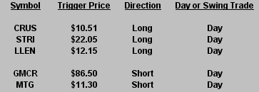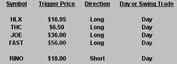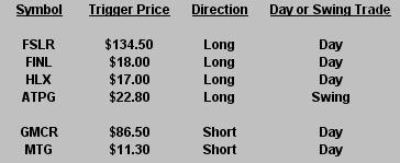 The Hit List is a look at our current swing trading positions. Stocks we are already in have “triggered”, while those we are considering for plays have not triggered. Click post title to view print-friendly link.