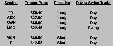The Hit List is a look at our current swing trading positions. Stocks we are already in have “triggered”, while those we are considering for plays have not triggered. Click post title to view print-friendly link.