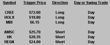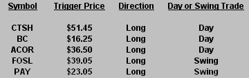 The Hit List is a look at our current swing trading positions. Stocks we are already in have “triggered”, while those we are considering for plays have not triggered. Click post title to view print-friendly link.