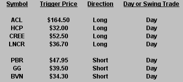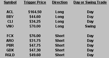 The Hit List is a look at our current swing trading positions. Stocks we are already in have “triggered”, while those we are considering for plays have not triggered. Click post title to view print-friendly link.