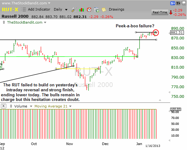 RUT – The RUT recovered quite nicely on Tuesday to finish at new highs after early weakness, but today it showed zero follow through and instead retreated a bit. Today was either nothing noteworthy or we just saw a peek-a-boo failure through the 883 level established last week. If so, I’d expect to see a test of 868 which was former resistance cleared a couple of weeks ago.