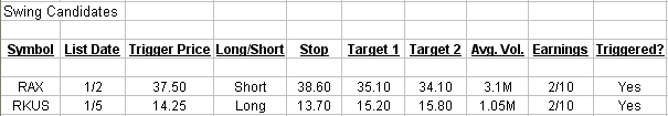 No new swing candidates tonight, just not a lot of setups out there and of those that look ready I’m simply not impressed enough with their price action/patterns to initiate plays for multi-day moves. I’ll stick with existing exposure heading into tomorrow.