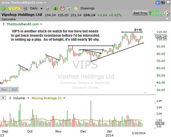 VIPS is on my radar but doesn’t quite look ready for a play. I’d like to see price near resistance first, and as of tonight it’s still several points away. Nice uptrend though, and definitely one to watch.