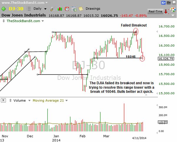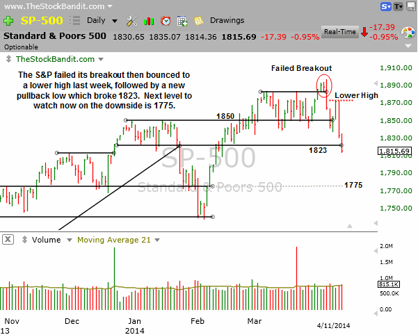 If April showers bring May flowers, then it’s shaping up to be one heck of a garden next month because right now it’s raining stocks. There seems to be no safe haven for risk to head other than the sidelines given the downside continuation we saw last week. The NAZ and RUT continued to lead the way lower (giving up over 3% each last week), only now the S&P 500 and DJIA have each also broken down from their respective trading ranges. I’m not sure it’s wise to write off the bull market just yet, but it sure isn’t looking good!
