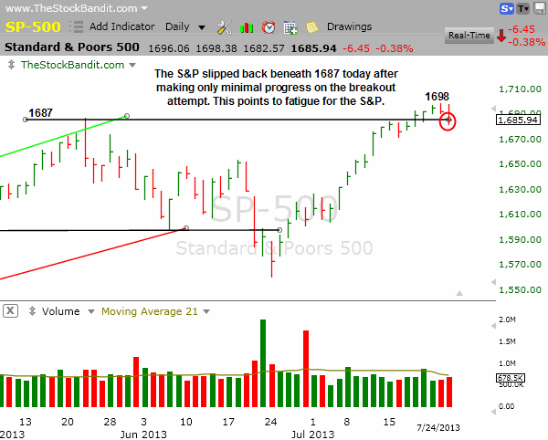 Elsewhere, we did see a bit of a pullback begin, but still nothing of much significance. The RUT was off just shy of 1% and the S&P 500 fell back below the 1687 high from May, which gives those indexes a shot at some continued profit-taking in the days ahead. Overall though, the market has maintained the vast majority of its recent gains, keeping the bulls in the driver’s seat for the intermediate term.