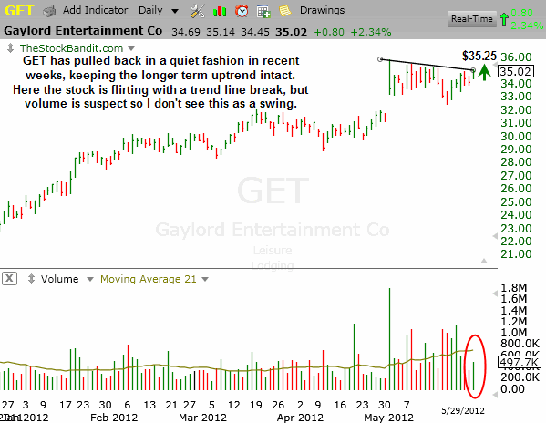 GET has held up quite well of late, and although it’s a slow-moving stock it looks poised for higher prices soon.