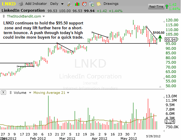 LNKD held key support today and is turning back up, offering a potential play on the long side for the nimble trader.