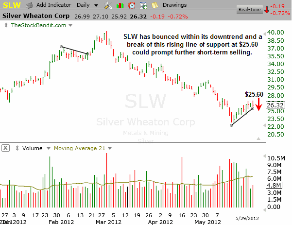 SLW looks to be carving out yet another lower high here, putting all eyes on this rising trend line for the next technical sell signal.