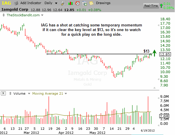 IAG is facing key resistance at $13, which if cleared, could produce a quick pop for nimble traders.